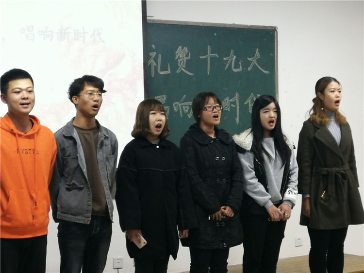 商务外语系唱响红歌礼赞十九大。10月29日晚,商务外语系团总支组织各班级开展了“礼赞十九大唱响新时代”主题红歌比赛。比赛在一首饱含浓厚爱国感情的歌曲《国家》中拉开序幕,17旅游管理2班张轶等六名同学演唱了革命老歌《打靶归来》,唱出了昂扬的气势,点燃了全场观众的情绪,整齐嘹亮的歌声赢得了热烈的掌声,最终获得了本次红歌比赛的第一名。此外,10月27日,系党总支理论学习中心组召开会议,集中学习党的十九大精神,总支书记王治玲同志主持会议。