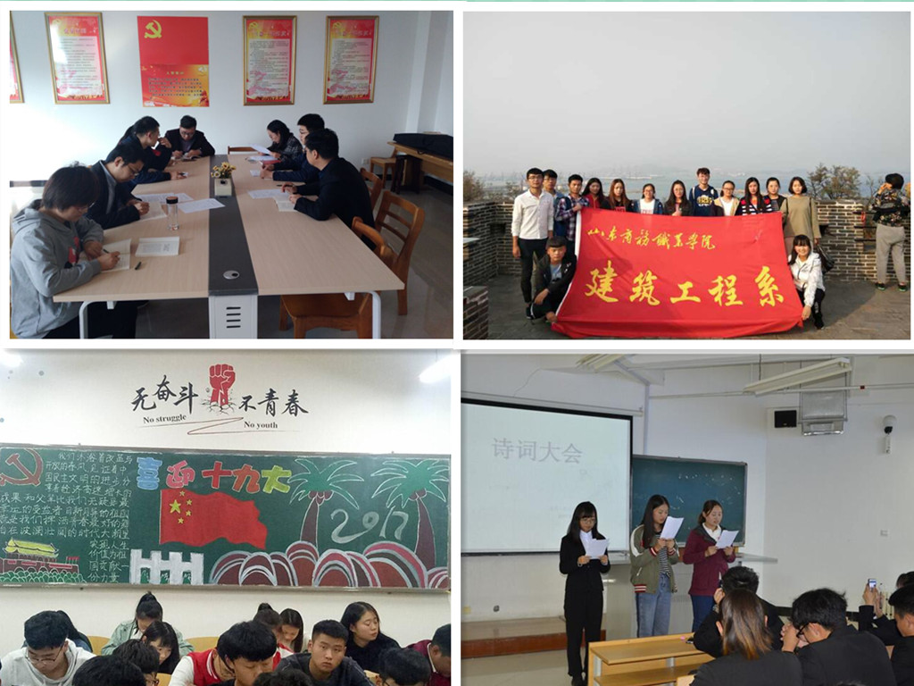 建筑工程系系列活动学懂、弄通、做实党的十九大精神。10月28日,是建筑工程系教职工的党员活动日,教工党支部开展“聚焦十九大加强职业教育 培养工匠精神”专题会议,学生党支部开展“不忘初心,牢记使命”十九大报告学习讨论活动。同时,开展了“党的十九大”经典语录分享、 “不忘初心跟党走传承经典谱新篇”诗词吟诵会、“美丽中国 绿色环保”系列活动,充分调动师生参与贯彻落实党的十九大精神的积极性。
