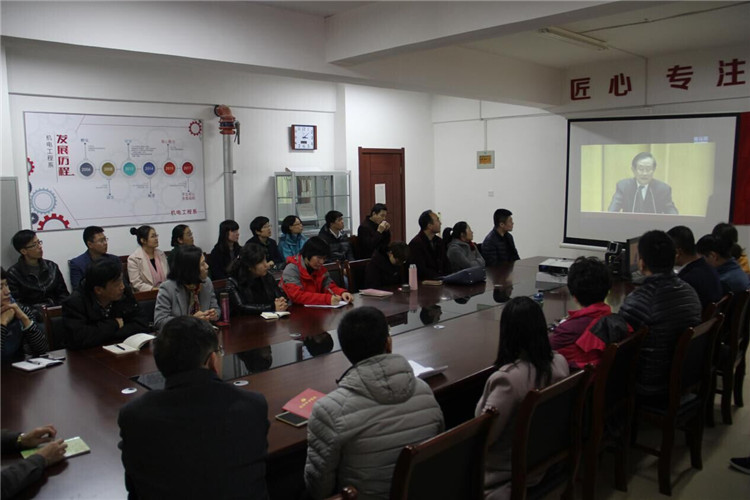 本站讯 11月14日下午15:00,为学习贯彻党的十九大精神、“科技三会”精神和习近平同志关于科学道德和学风建设的重要指示精神,机电工程系组织系部教师在办公楼519集体观看了“2017年全国科学道德和学风建设宣讲教育报告会”的网络直播。