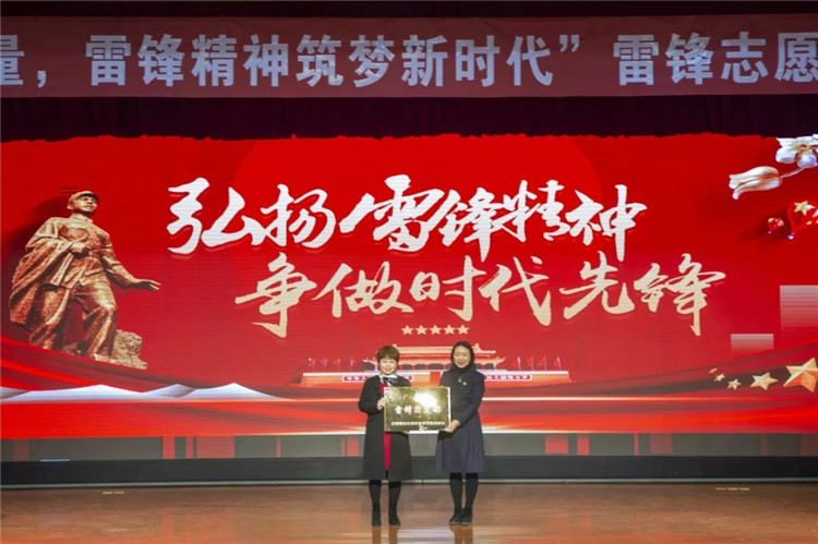 会上,刘艳蔚向新成立的“山东商务职业学院雷锋团支部”授旗,同时为该支部第一个对接服务单位,高新区马山街道海兴社区服务基地授牌。为响应共青团中央提出的“强基层,创活力”号召,经学校团委研究决定,以今年学雷锋日为契机,正式成立“山东商务职业学院雷锋团支部”,并以此为抓手,打造一支有活力、强动力的先锋团支部。“雷锋团支部”在学校团委的直接带领下,由7个系的学雷锋志愿服务团员组成,将成为学校志愿服务的一支先锋队,成为“大爱校园”的生力军,在商务学子履行新时代青年使命,践行社会主义核心价值观的道路上镌刻新的精神力量。